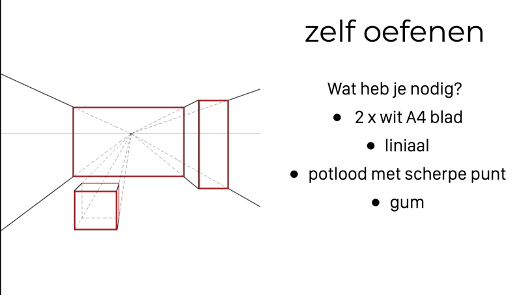 Je hebt nu zelf twee éénpuntsperspectieftekeningen gemaakt.