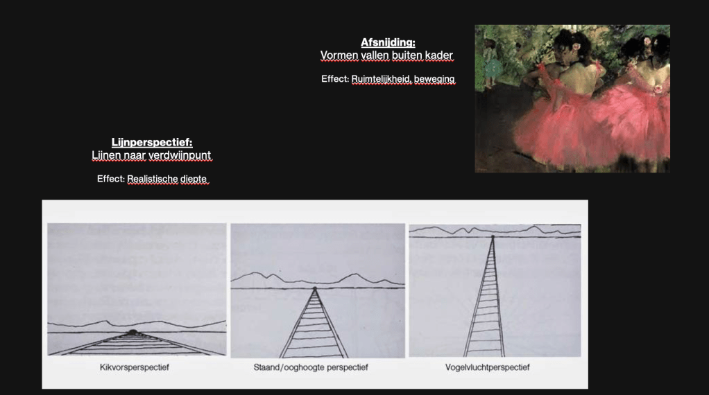 | Afsnijding | Vormen vallen buiten kader | Ruimtelijkheid, beweging |